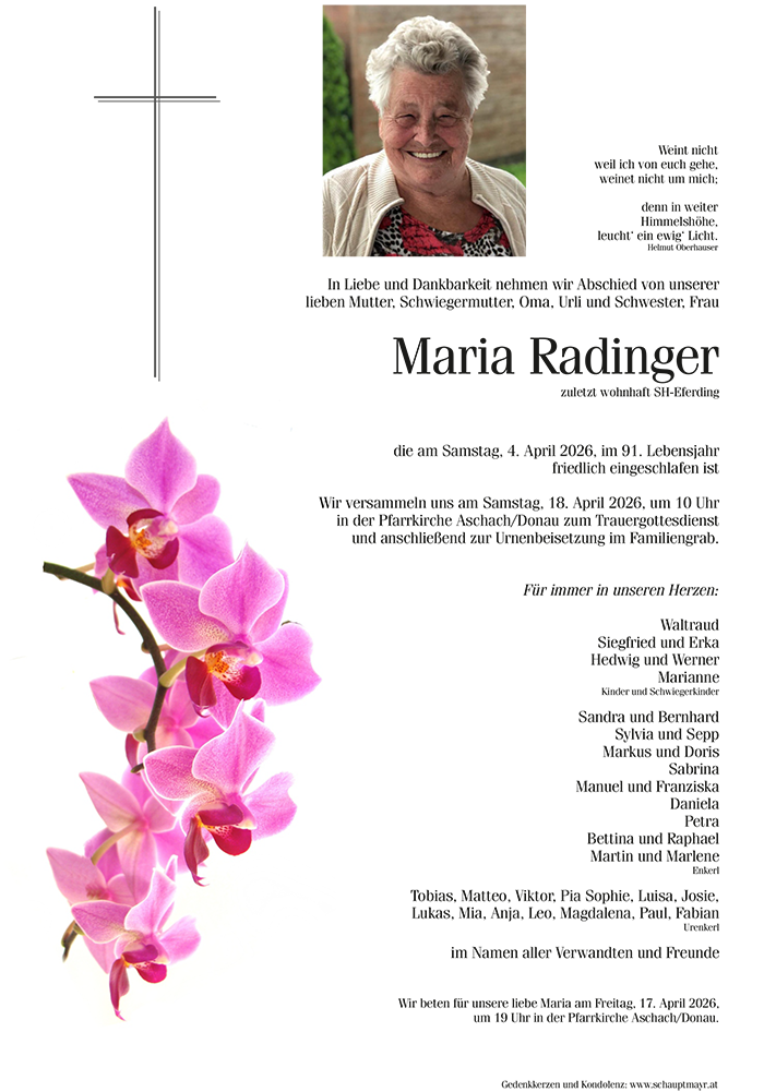 Anna Schauptmayr - Bestattung Aschach a. d. Donau | Grünauerstraße 19 | 4082 Aschach/Do. | +43 (0)7273 6450