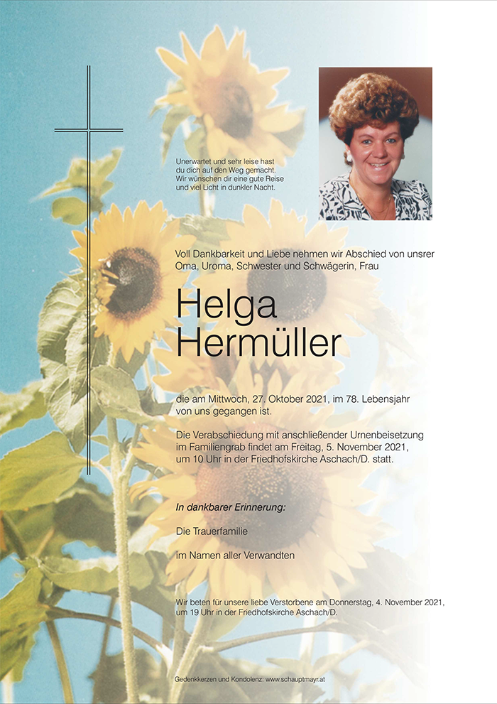 Anna Schauptmayr - Bestattung Aschach a. d. Donau | Grünauerstraße 19 | 4082 Aschach/Do. | +43 (0)7273 6450